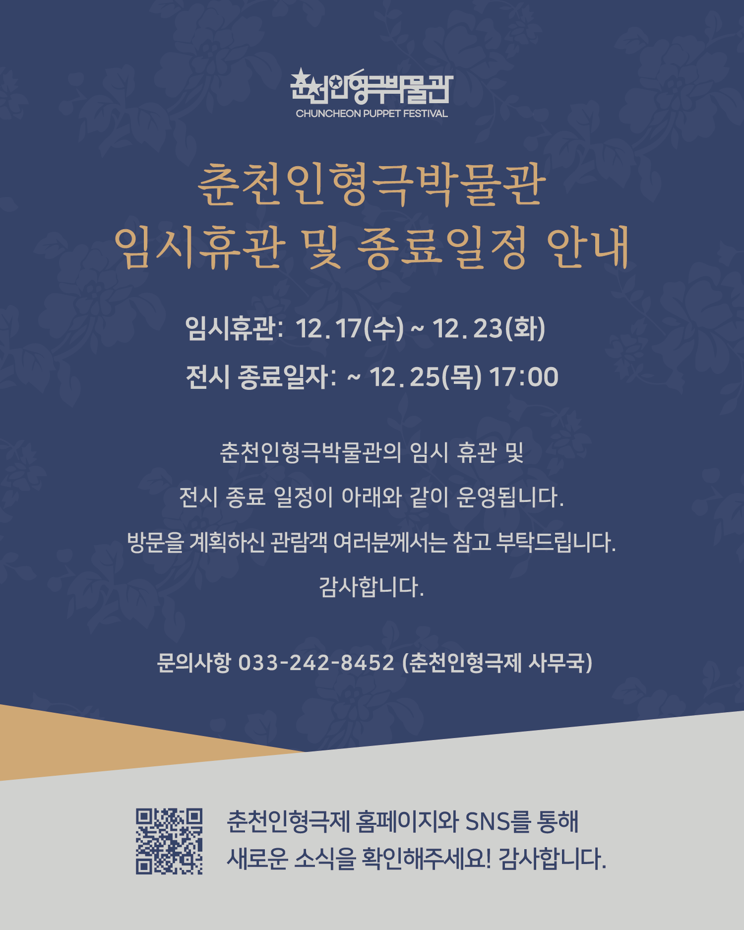 [춘천인형극박물관] 박물관 임시휴관 및 종료일정 안내